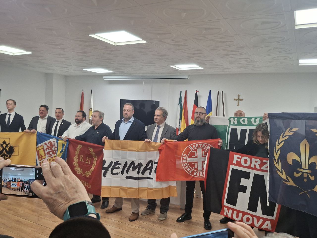 Después hablo Goran Davidovic, representante del Partido de los Nacionalistas Serbios. Recordó la agresión de la OTAN contra Serbia en 1999, con miles de civiles muertos. Habló que hoy de nuevo se está intentando montar revoluciones de colores usando a grupos antifas como tropas de choque con la intención de acabar con cualquier gobierno que se niegue a reconocer Kosovo, a condenar a Rusia y a incluir dentro de Serbia toda la ingeniería social que está destruyendo otros países europeos. Describió a la UE como una prisión de naciones de Europa, a las que está empujando a recibir una inmigración masiva inaceptable.