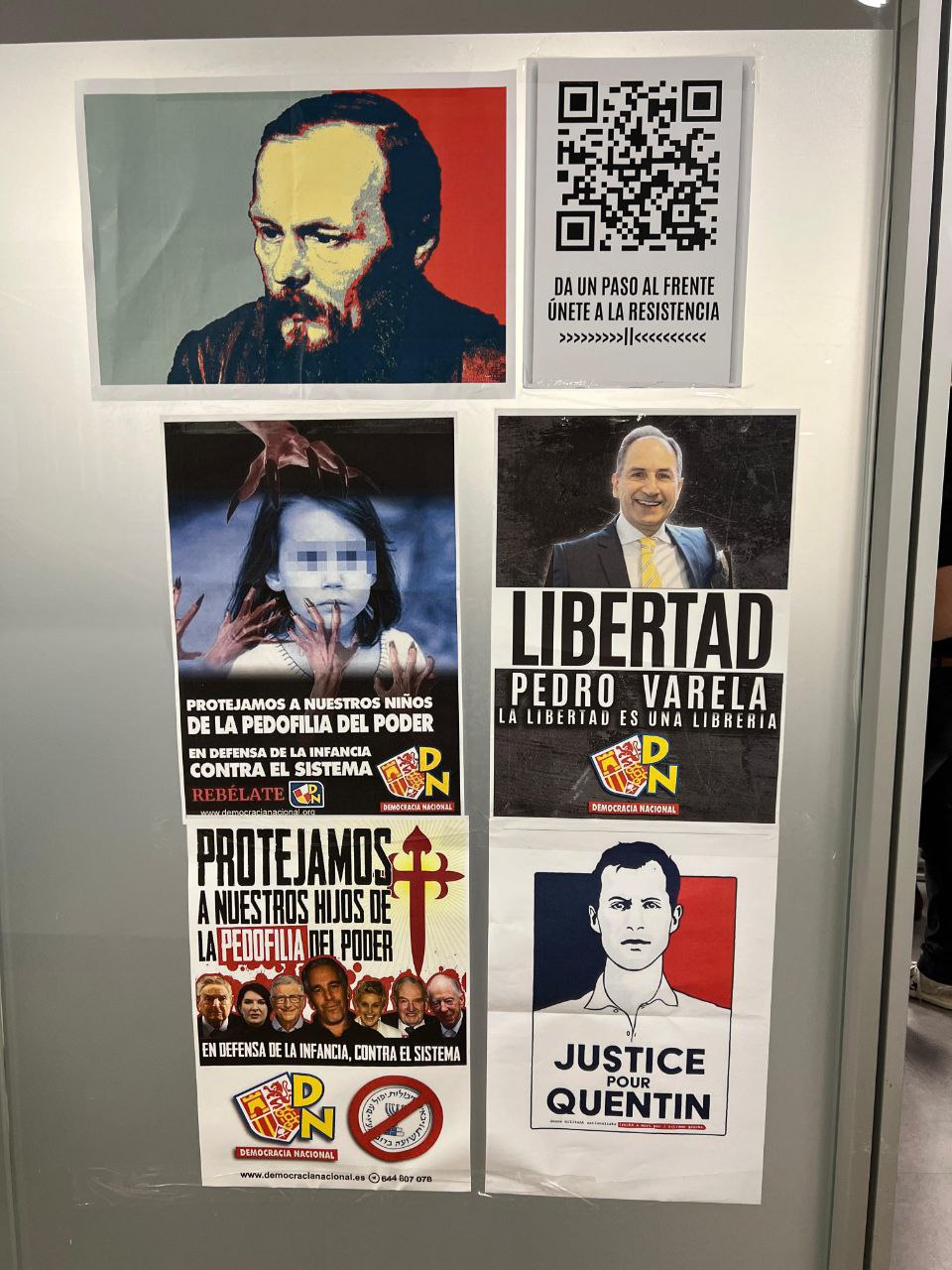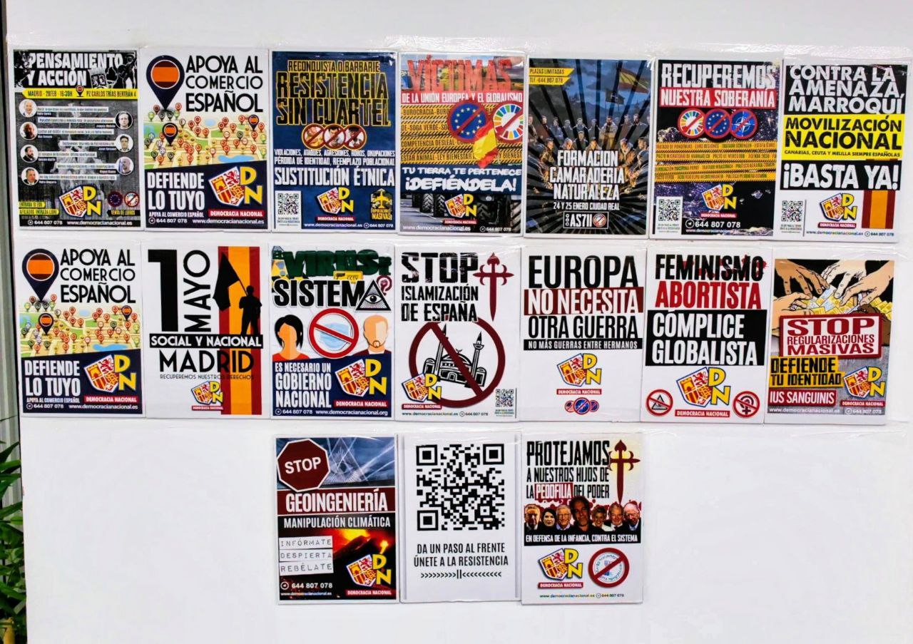 Tras la intervención del presidente de DN se realizó un breve receso en el que parte de la militancia se desplazó a la plaza de Carlos Trías Bertrán para realizar una acción contra las tramas de abusos sexuales y contra las élites sionistas, tras el caso EPSTEIN.